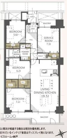 専有面積:98.45㎡ バルコニー面積:14.65㎡