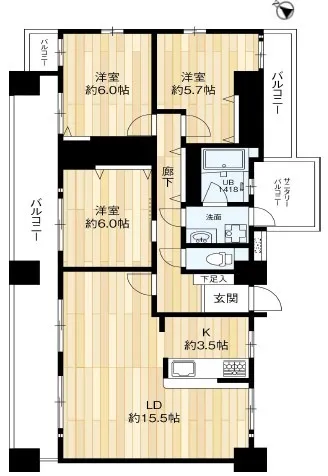 主採光:北西向き 間取り:3LDK