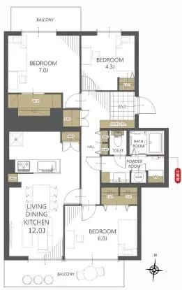 専有面積:78.24㎡ バルコニー面積:10.59㎡