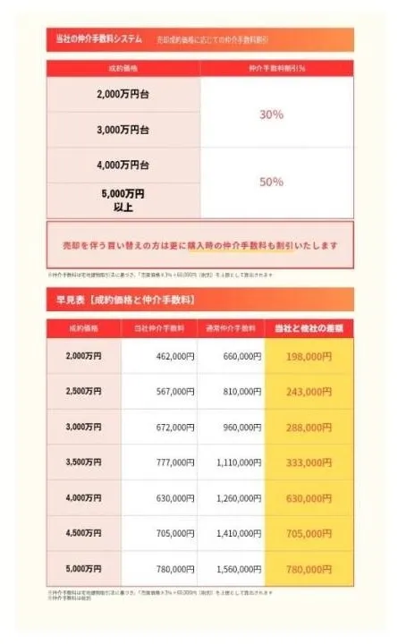 サンファースト独自の「成約価格に応じて、仲介手数料がお得になる」料金システムを採用しています。
