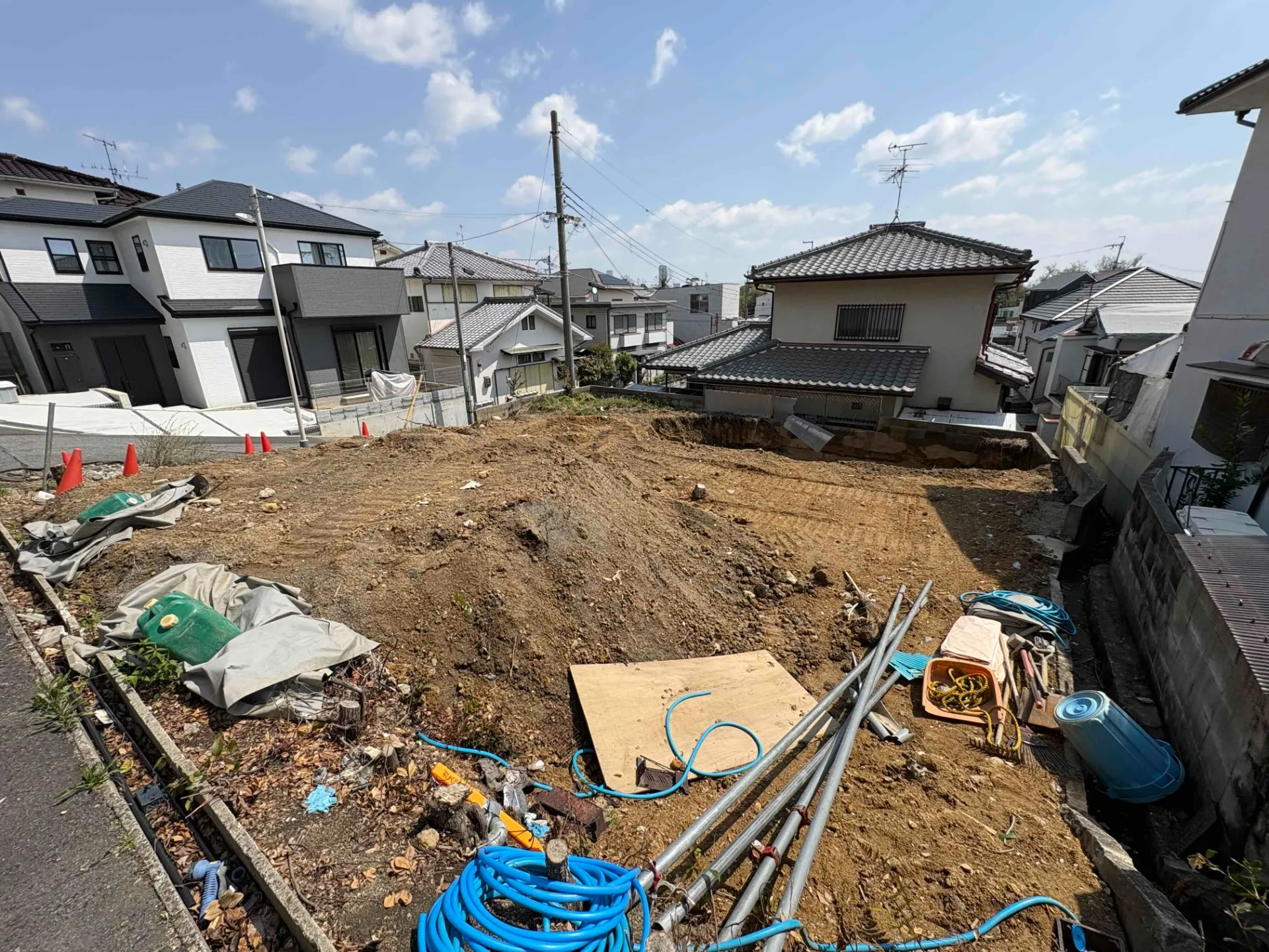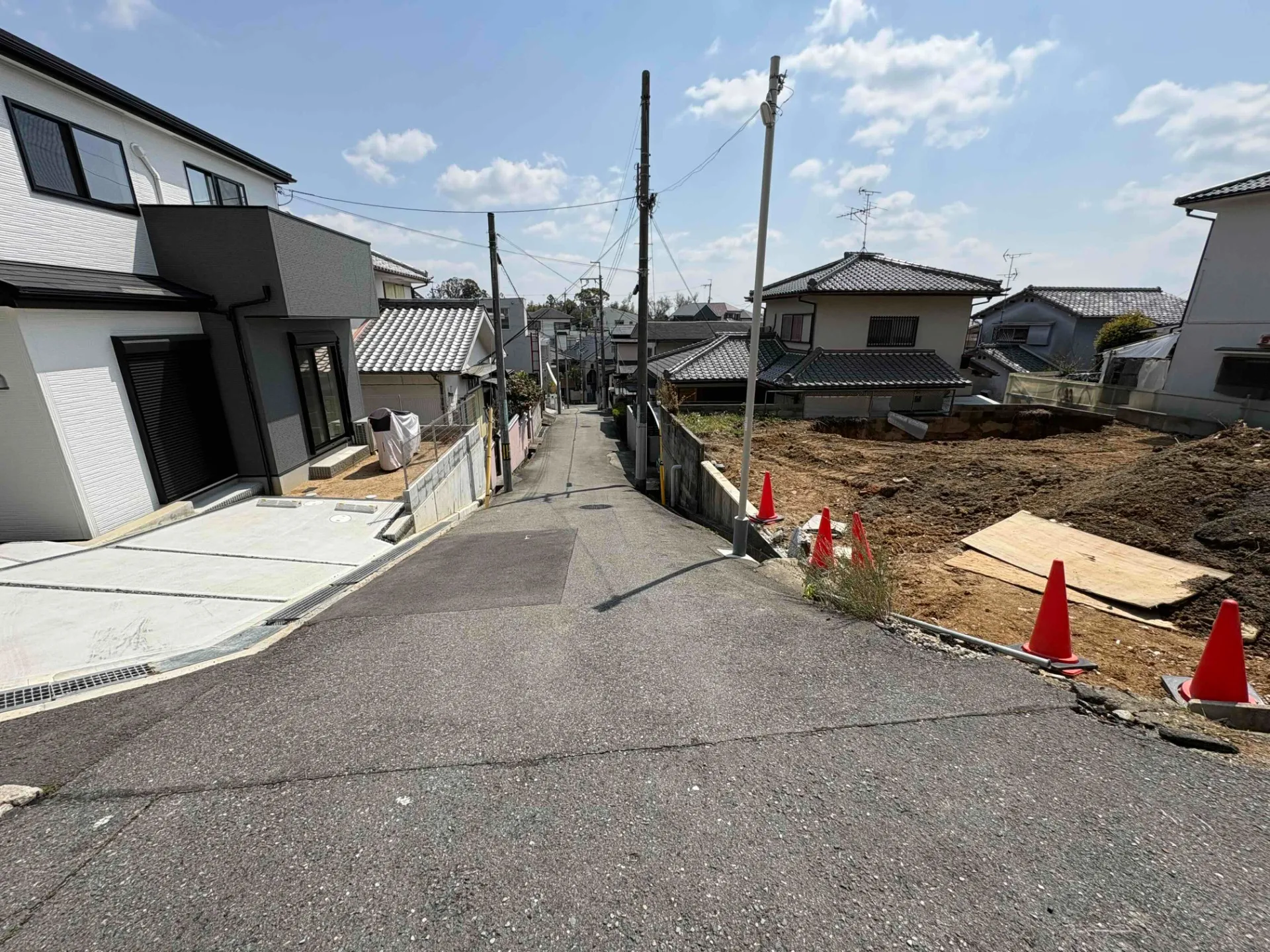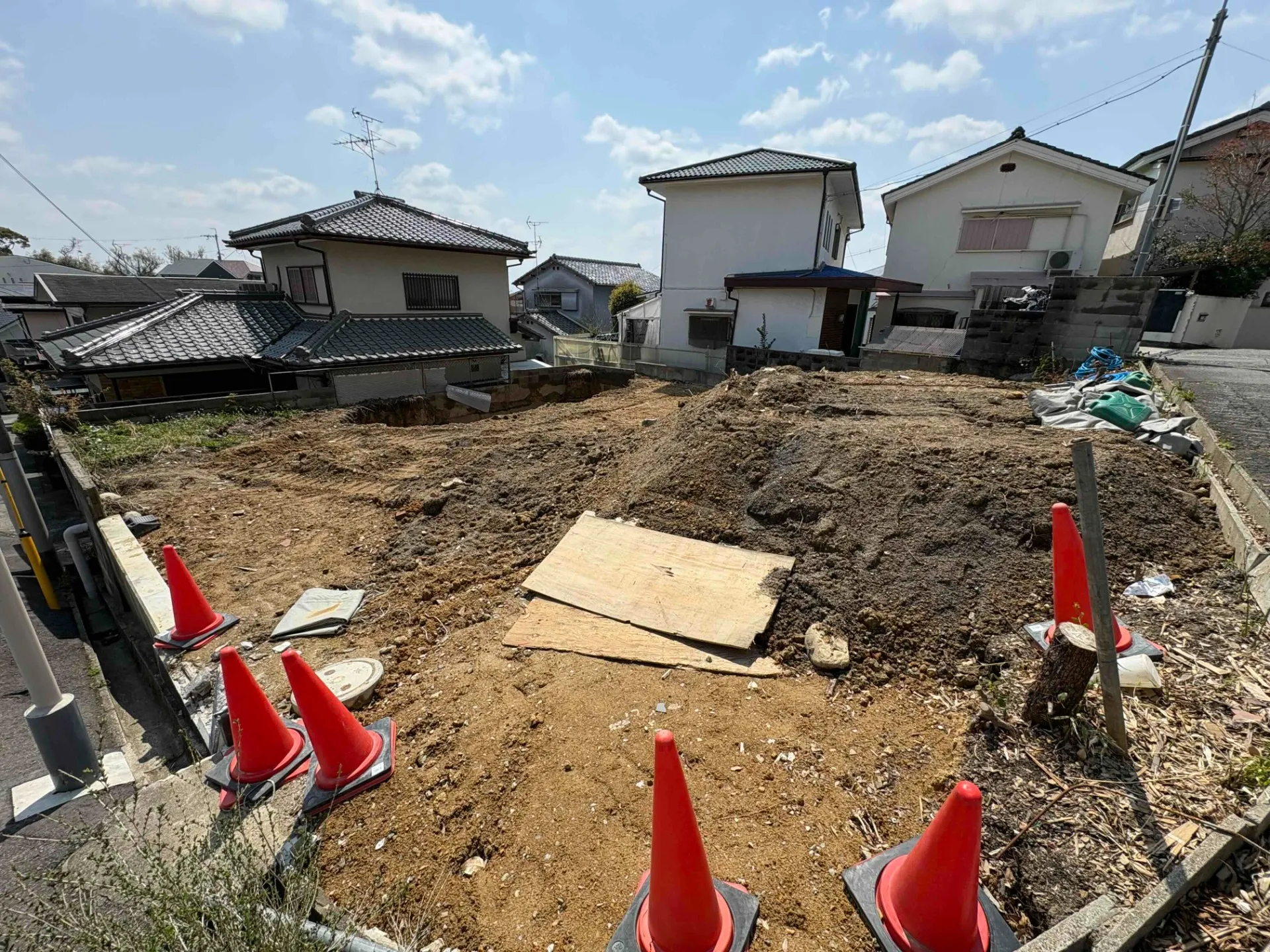 現況更地、更地渡し 北西・北東角地です 高台につき日当たり良好